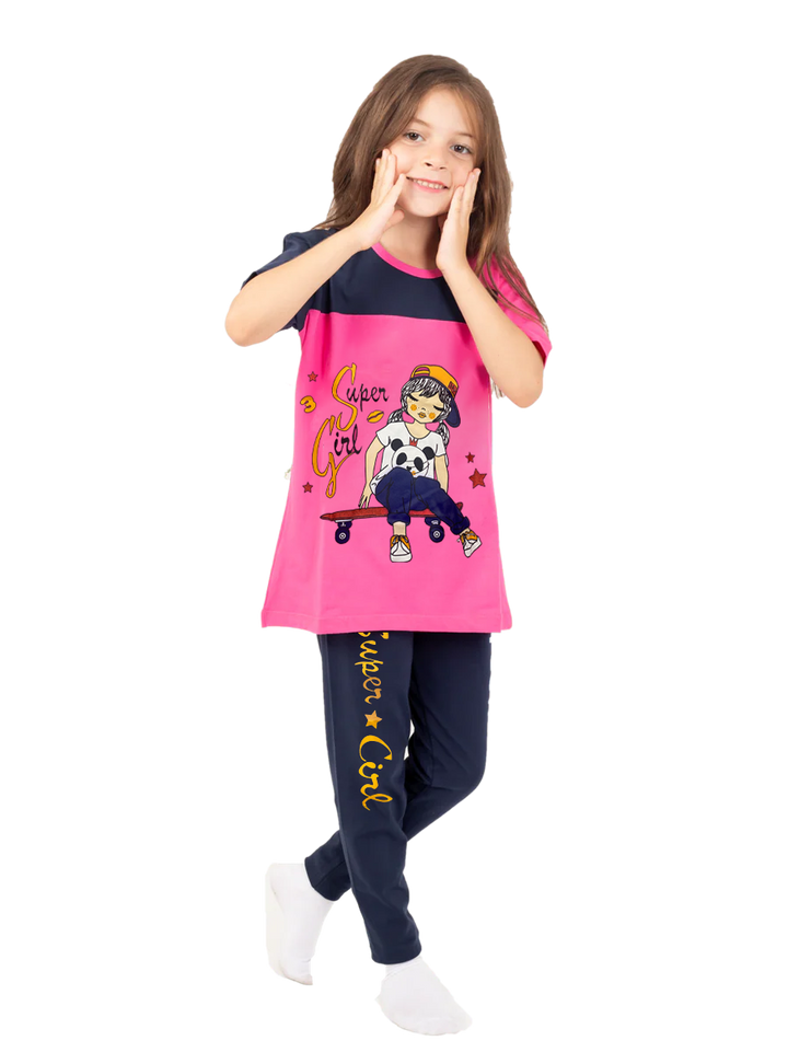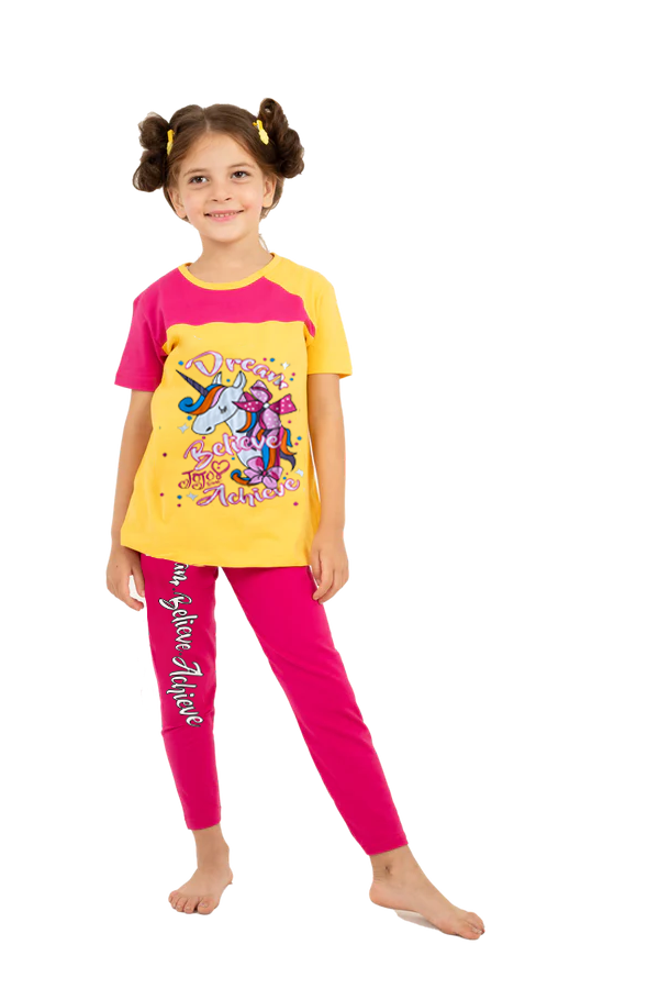 - عدد القطع: ٢ (تيشيرت + بنطلون)